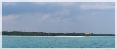 Suddenly, from afar, we saw this strip of land with white beach. We were told that was the "Pulau Pasir" [translate: Sand Island] which only appeared during low tide. We were already excited when we it was announced we would be stopping there to take photos.